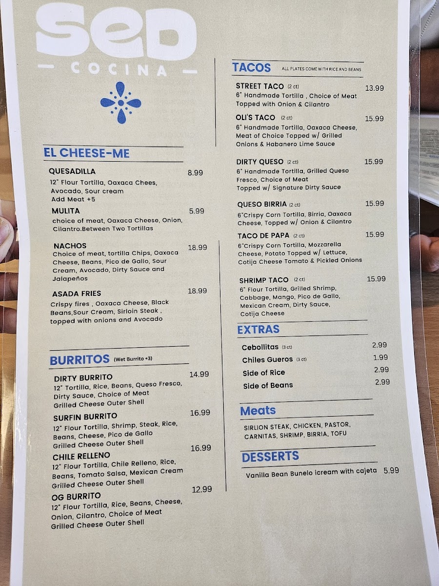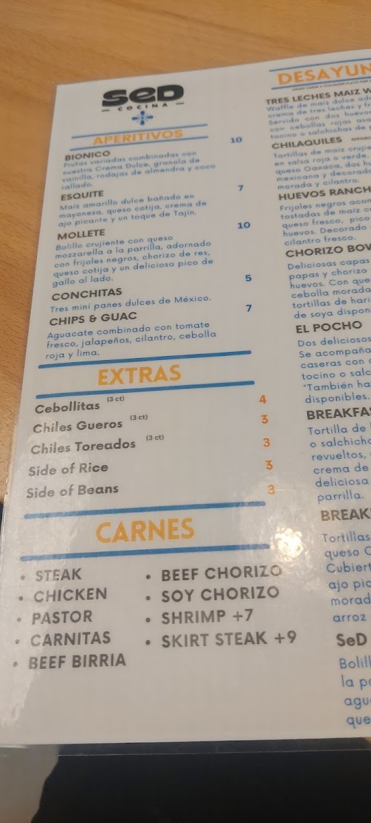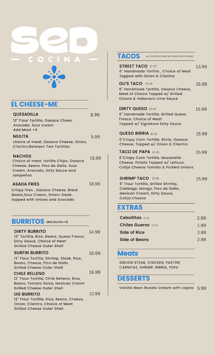 SeD Cocina Menu